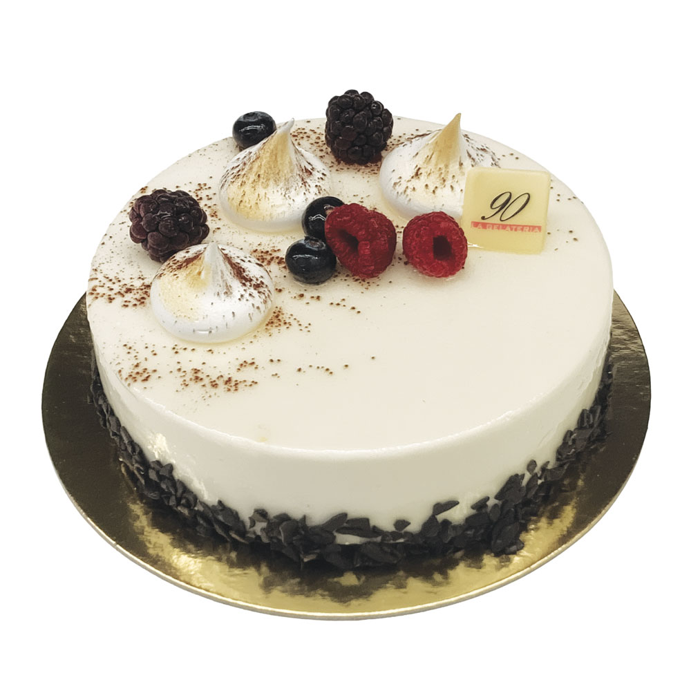 Semifreddo alla Crema Chantilly con glassa trasparente con inserto di parfait al Cioccolato e ganache Fondente.